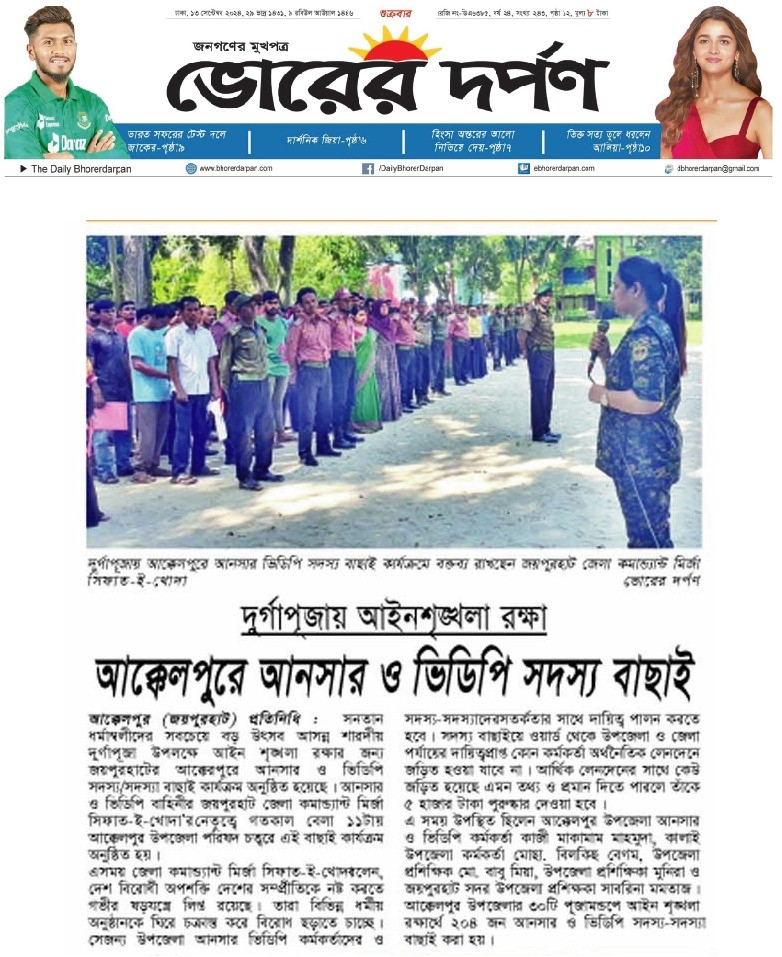 শারদীয় দূর্গা পূজা উপলক্ষ্যে আক্কেলপুর আনসার সদস্য/সদস্যা বাছাই কার্যক্রম